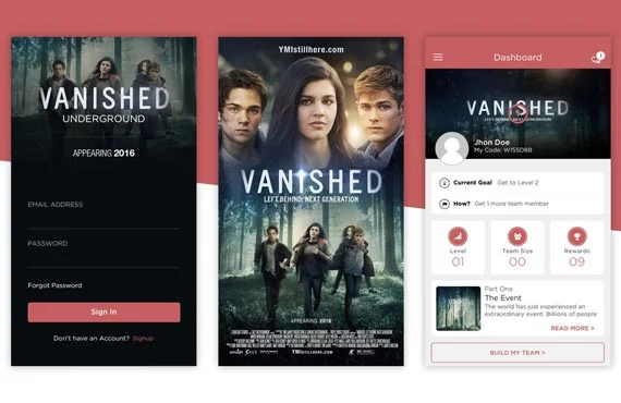 The Vanished Underground is a community where fans of the upcoming movie, VANISHED Left Behind: Next Generation can get exclusive movie content and win prizes. The app has been developed as a promotional tool of the movie. It helps users to invite friends to join their team and get rewards like movie trailer, wallpapers and chances to win movie tickets. App shows your team as well as all users on the Map. It allows user to chat with other team members from the application.
